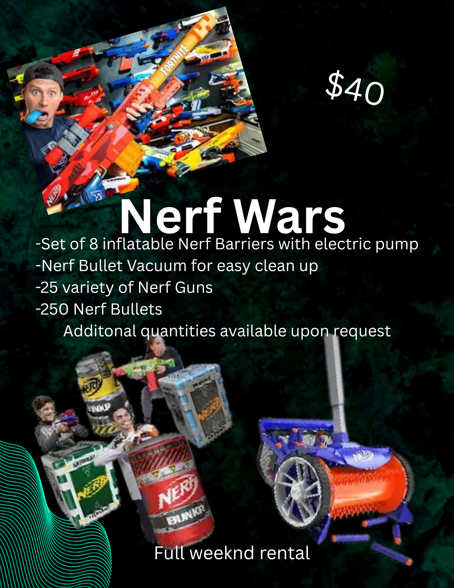Get the adrenaline pumping with our exciting Nerf War packages! We supply the blasters, barriers, and safety gear for an unforgettable battle.